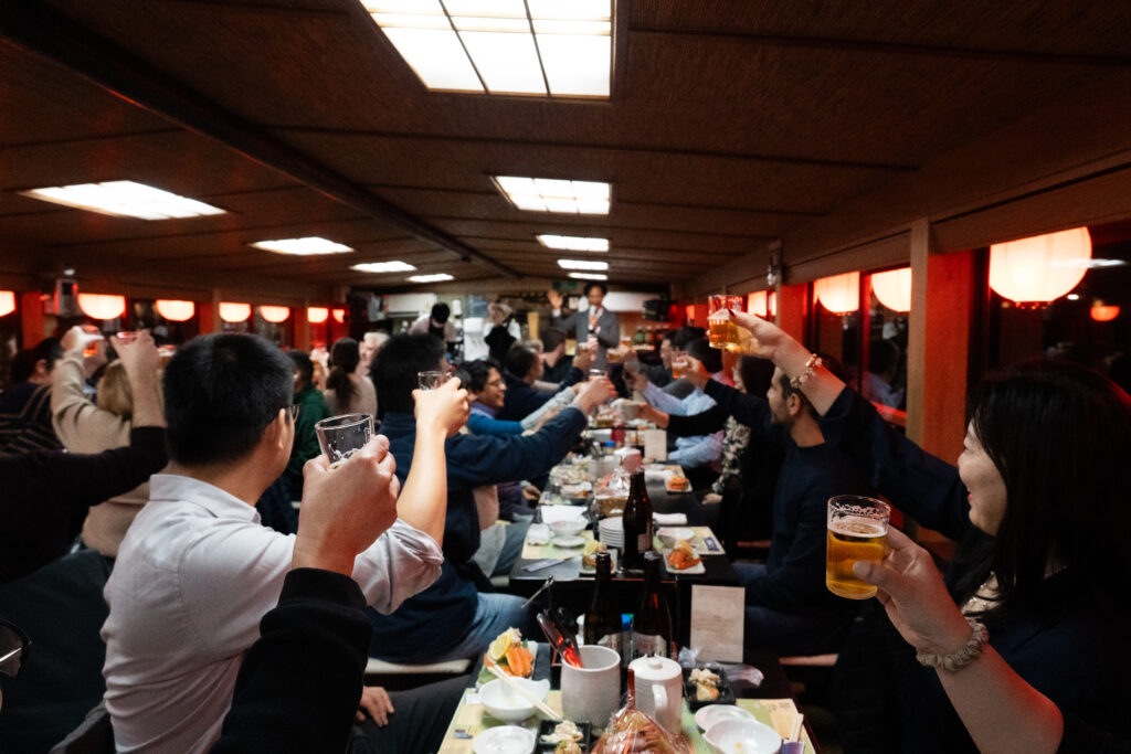 夜は屋形船にて、芸者による演舞とお座敷遊びを満喫。フィナーレの「東京音頭」では全員が輪になって踊り、最高潮の盛り上がりの中で初日を締めくくりました。