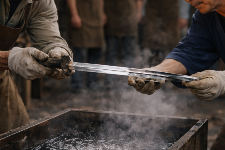 最後に、刀に命を吹き込む「焼き入れ」を行い、刃の紋様や硬さを決定づけます。冷却水に入れた瞬間の激しい音とともに完成した一振りは、あなた自身の努力が形になった世界に一つだけの守り刀として、一生寄り添う存在となるでしょう。