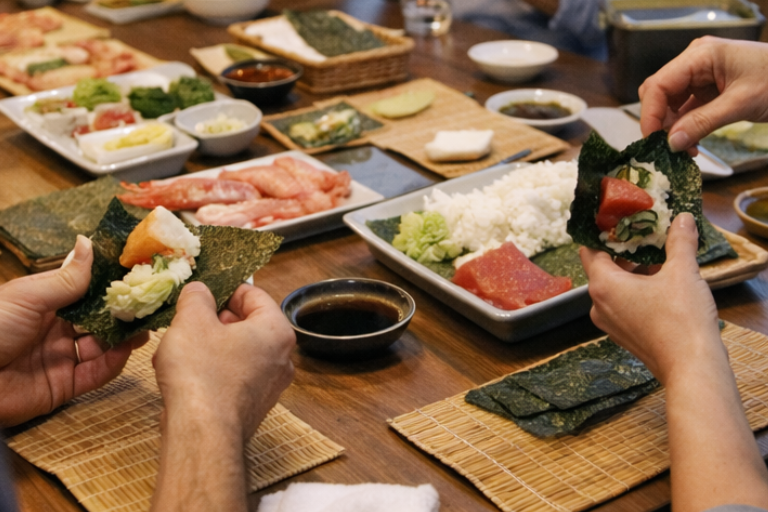 体験の最後は、自作のお寿司を囲んでの食事会です。プロから教わった寿司の知識や技法を振り返りながら、目でも舌でも楽しめる華やかな食卓を囲んでみてはいかがでしょうか。